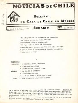 Noticias de Chile. N°140. Año III. Del 14 al 20 de mayo de 1987.
