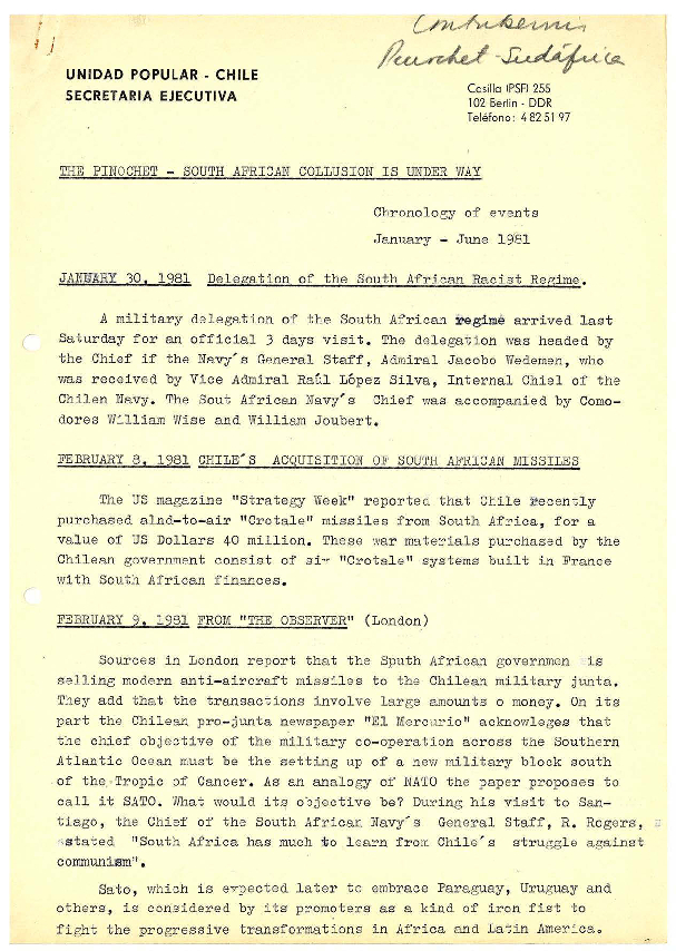 Spanish » The Pinochet-South African collusion is under way (1)